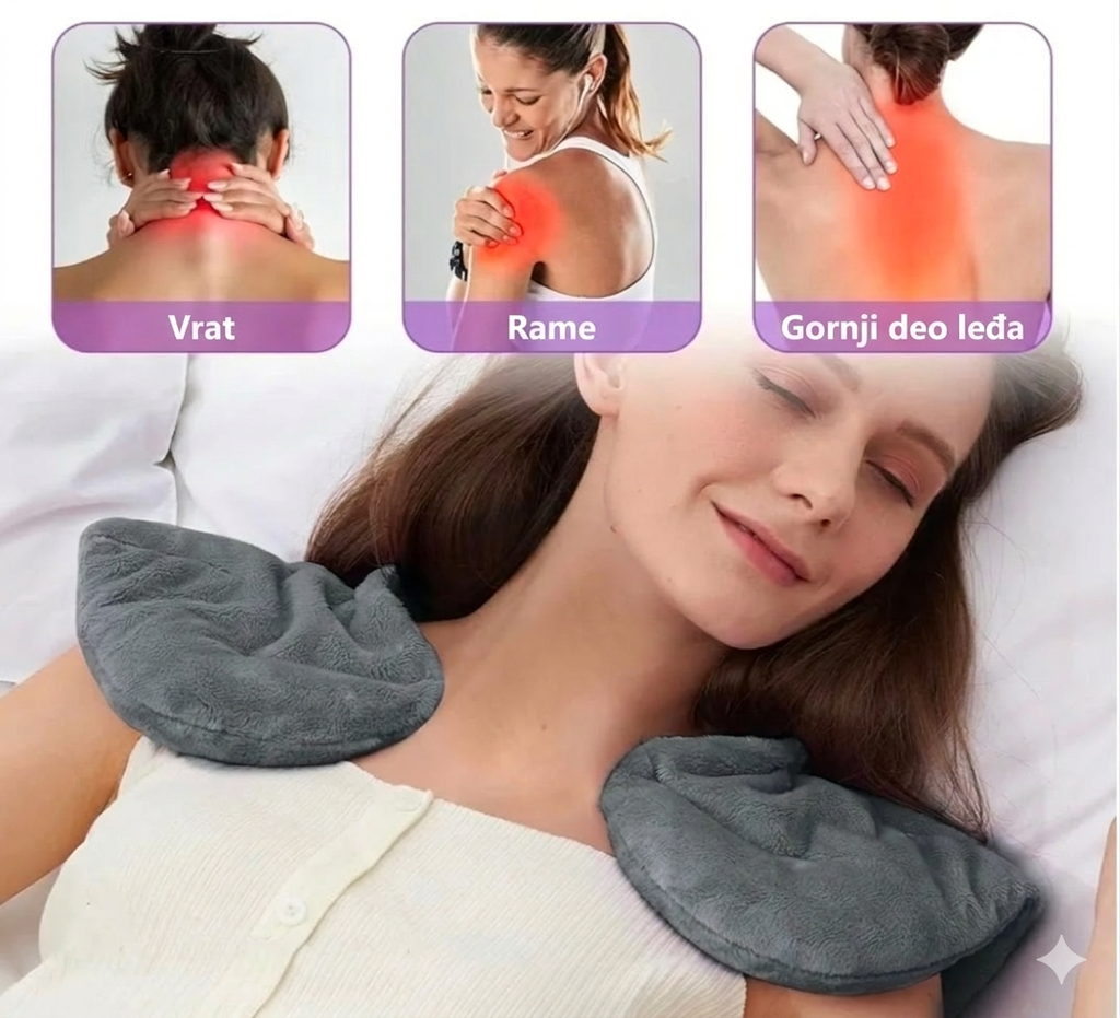 ​Terapija Toplotom i Hladnoćom: Obloga se može zagrejati u mikrotalasnoj pećnici za dubinsko opuštanje mišića ili ohladiti u zamrzivaču za smanjenje upala i otoka.